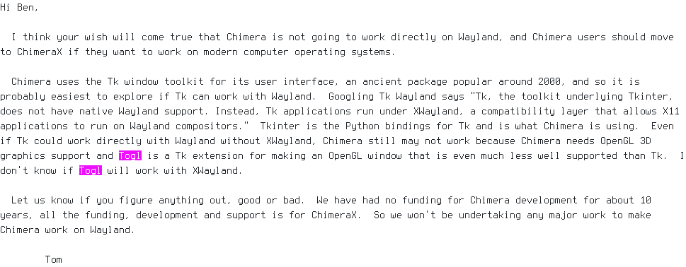 >>220354520Io ho x11 qui non uso waylandMadonna ho paura che scrivo qualcosa che poi un domani non mi funzionerà più perché le cose diventano deprecate, l'unico ponte per avere opengl è roba preistorica (e funziona ancora)