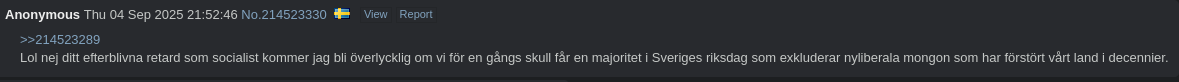 >>220353001hade rapporterat dig för uppvigling till grov misshandel om det inte vore emot reglerna att annonsera rapporteringar