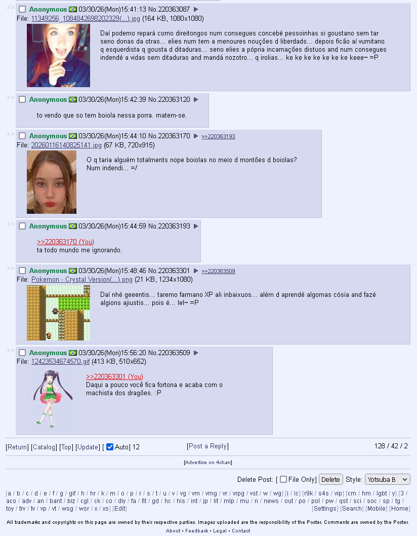 >>220358459voce deve ser mulher pra conseguir falar tanta bosta sem sentido assim