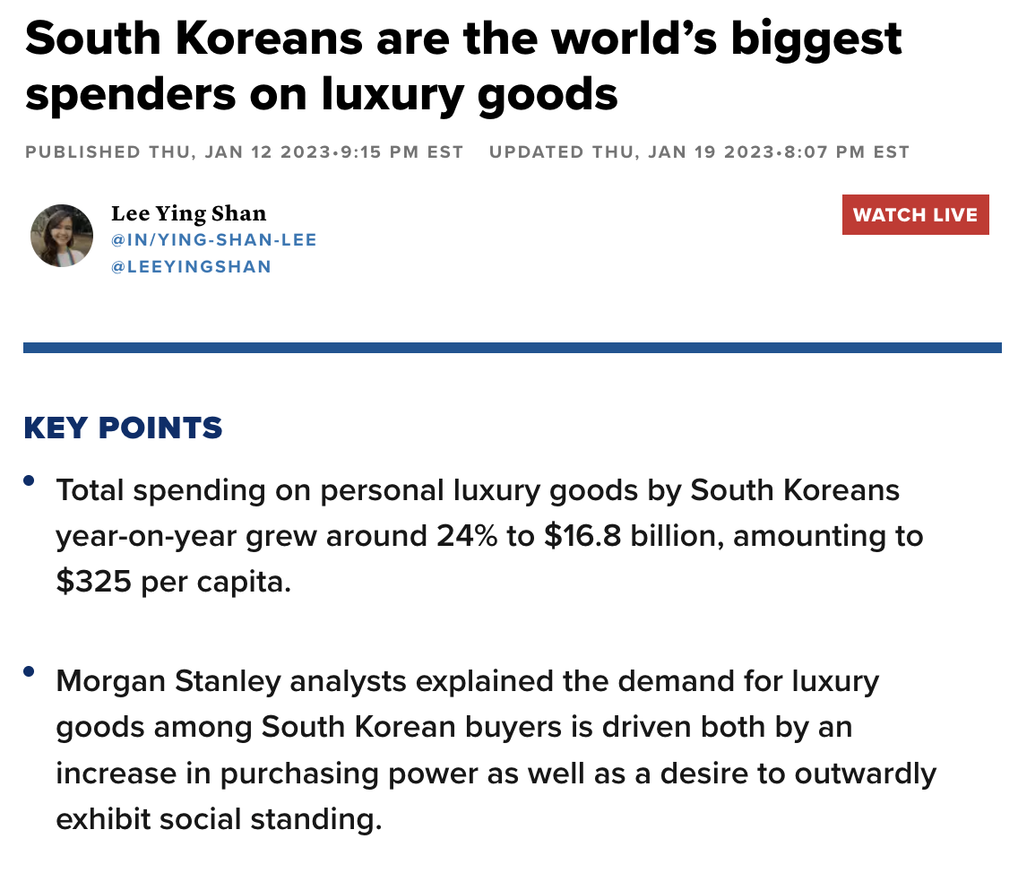 >>220374167>to support your future familyLol no, they spend it on luxury goodsSouth Koreans especially spend the most on that stuff