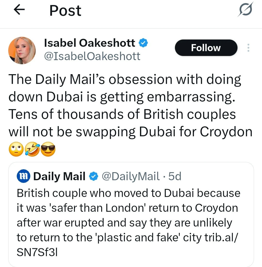 Things Croydon is better at than Dubai:1. Caribbean food2. No influencers3. Not being attacked by missiles