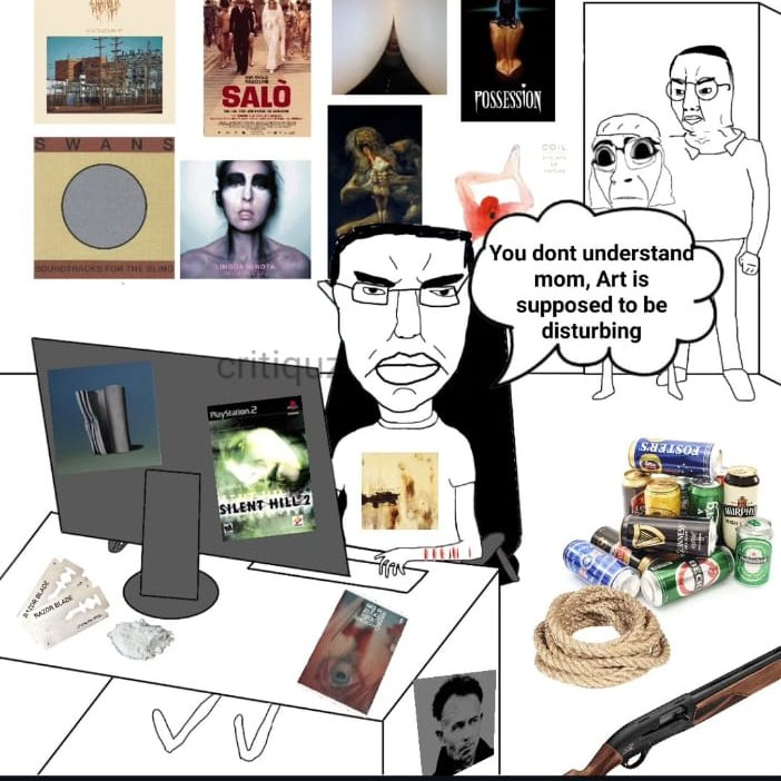 rorke enjoying lowbrow art made by normie liberalsleftypol enjoying highbrow art made by reactionary fascists