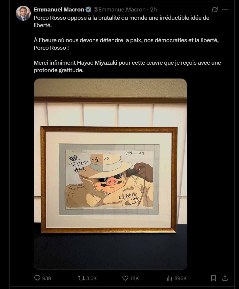 miyazaki se la joue banksi, ou qqch..mais macron réceptionne habilement, wowwatch and learn mes coco
