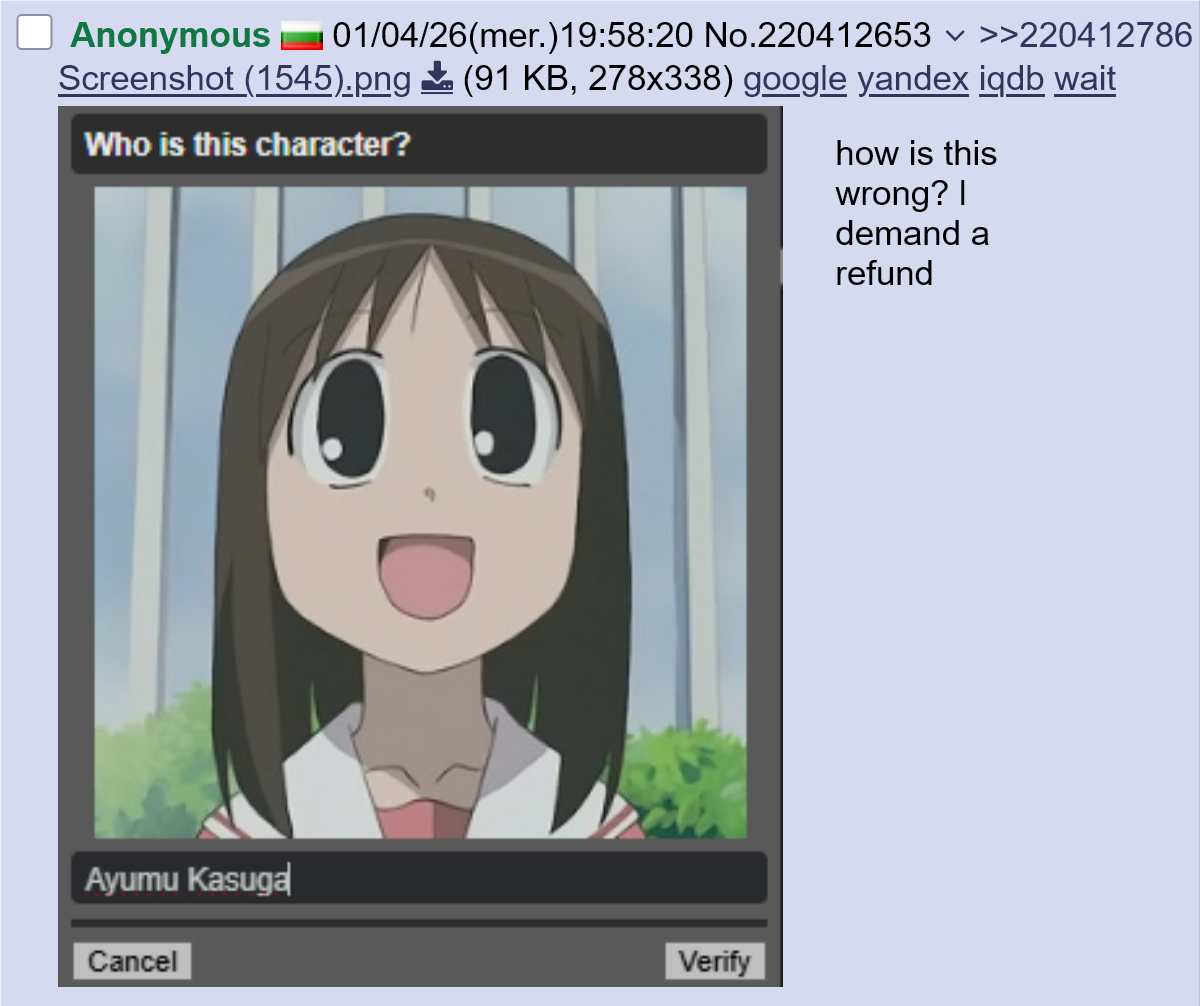 >>220414059Je sais, j'ai réussi le captcha.