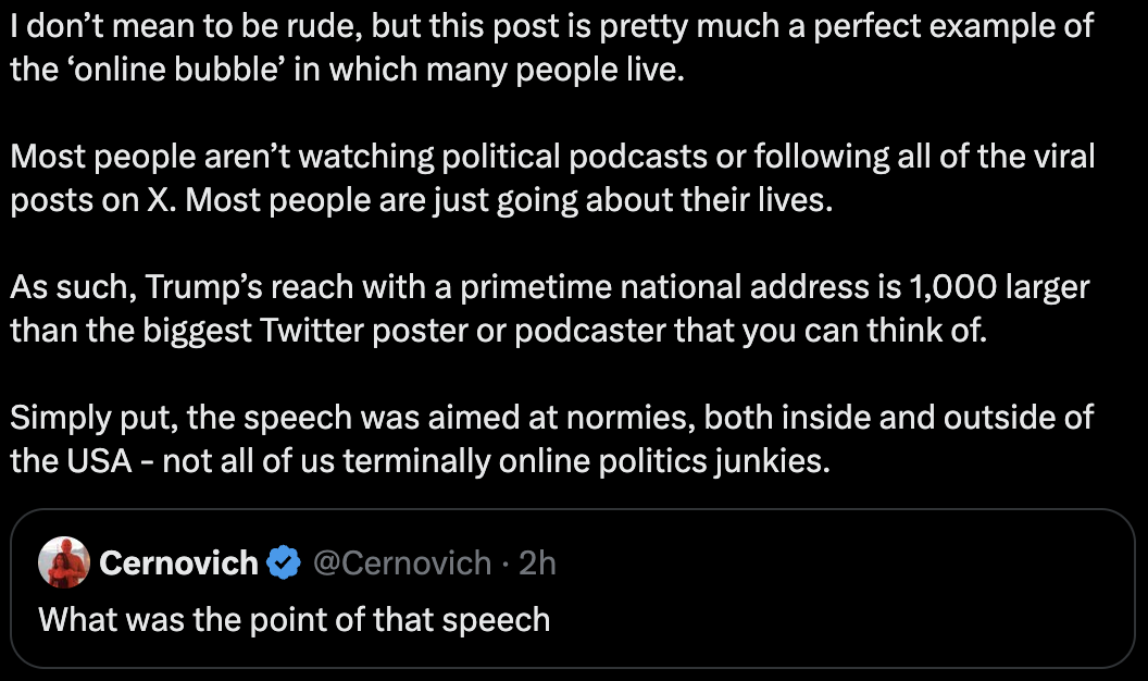 En vérité le véritable clivage racial aujourd'hui c'est plutôt ça. D'un côté des béotiens qui vivent leur petite vie dans la bouillasse et sont totalement ancrés dans le monde réel comme dit Jeffrey, et de l'autre des gros cerveaux qui positionnent leur sang et leur argent en fonction des événements géopolitiques et macroéconomiques. Littéralement le sommet de la pyramide de l'Humanité