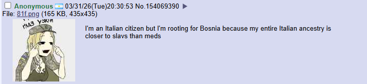 >>220391759>latinx thread>full of tranimekekthanks didnt know this was onwould be hilarious if italy doesnt make it