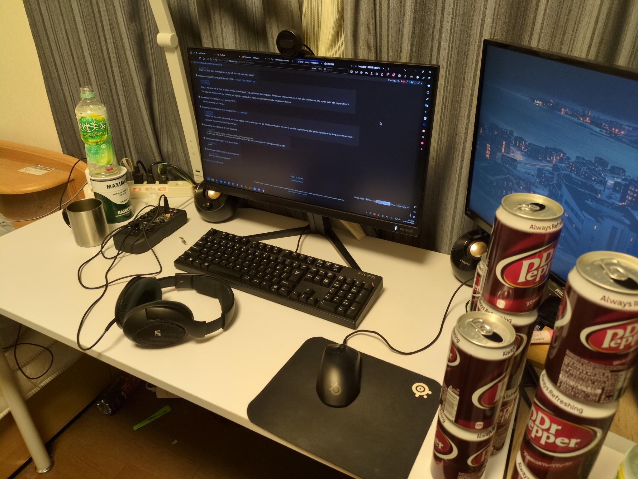 I know its not crazy for normie standards, but this is nice, no more trashI cleaned my keyboard and desk yesterday too, the whole room is nice nowThat thing behind the TV with light coming out is a garden/weed plantation not a pile of clutter>>220406632Never They are too expensive and nice looking for that>>220403937I like looking at them.I could spent the money on a whore instead, but thats a one and done thingI can always look at the figures >expensiveyeah they are, cost more then my new monitor the two of themshipping from japan is ungodly expensive