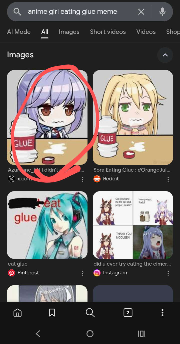 O meu era só a silhueta de uma menina de anime, aquela de cabelo roxo que tem um meme dela comendo cola