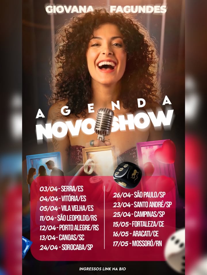 >>220420022>… Pelo meu novo show de stand up sobre Relacionamento & Não monogamia - interativo, com vários quadros, paródias, dinâmicas - a plateia participa, as vezes até beija na boca kkk e o feedback tem sido INCRÍVEL >Eu estarei nessas próximas cidades aí e eu te espero lá - link na bio