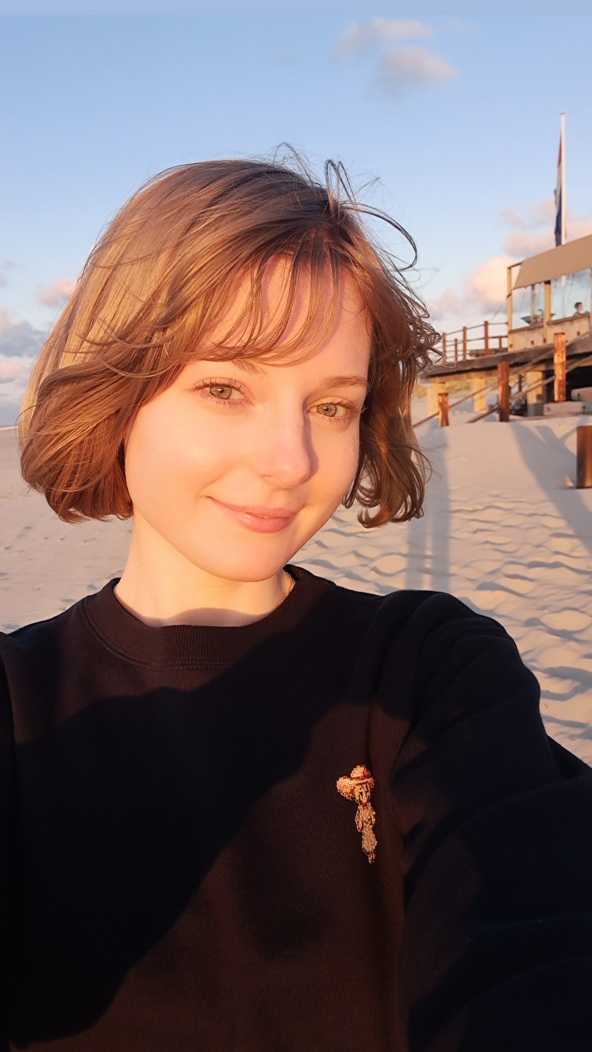 Acho que acabei de conhecer a irmã dela. Mesmos jeitos, altura, cara, cabelo. É no negócio novo da senpaiília então é quase certeza.