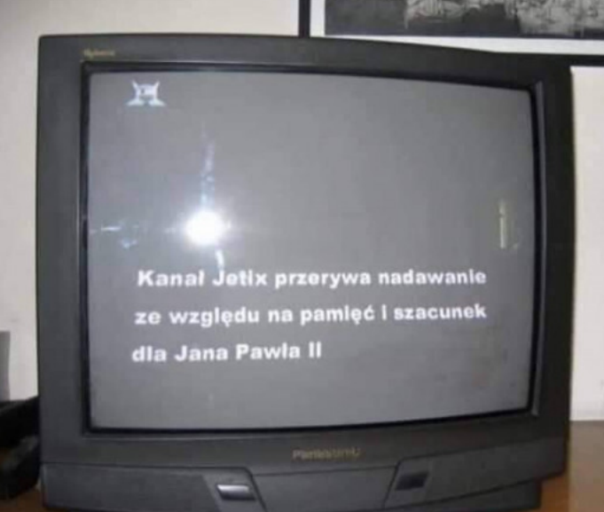 >>220427923This image is likely AI-generated or a digital manipulation.A few reasons:1. No official record — There is no credible news or archive showing that Jetix (a defunct children’s channel, rebranded to Disney XD in many countries in 2009) interrupted regular programming “out of memory and respect for John Paul II.”2. Unusual phrasing — The Polish phrase “przerywa nadawanie ze względu na pamięć i szacunek” is awkward for a TV announcement; broadcasters typically say “zmienia ramówkę” or “emitowany jest specjalny program”.3. Anachronism — Jetix still existed when John Paul II died (April 2, 2005), but a kids’ cartoon channel suspending broadcasts for a papal death would be extremely unusual, and no such event is documented.4. Visual style — The logo and on-screen text placement look slightly off compared to real Jetix ident screens from the mid-2000s.So it’s fake, likely created as an internet meme or test of AI image generation.