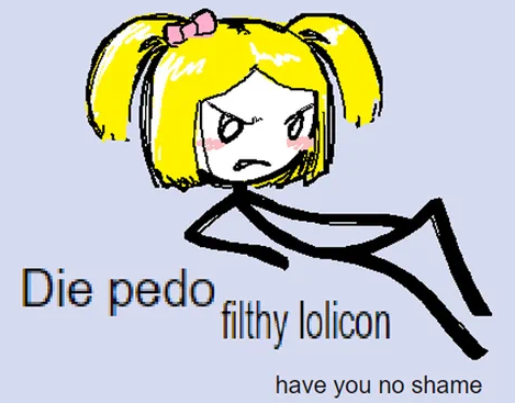 >estuvo hermosa la noche anon>me encantó cuando me contaste de tu grupo de amigos de internet y de cómo se la pasan publicando dibujitos animados y discutiendo cuál nena ficticia de 11 años tiene más probabilidades de estar menstruando>querés venir a tomar café a mi depto?
