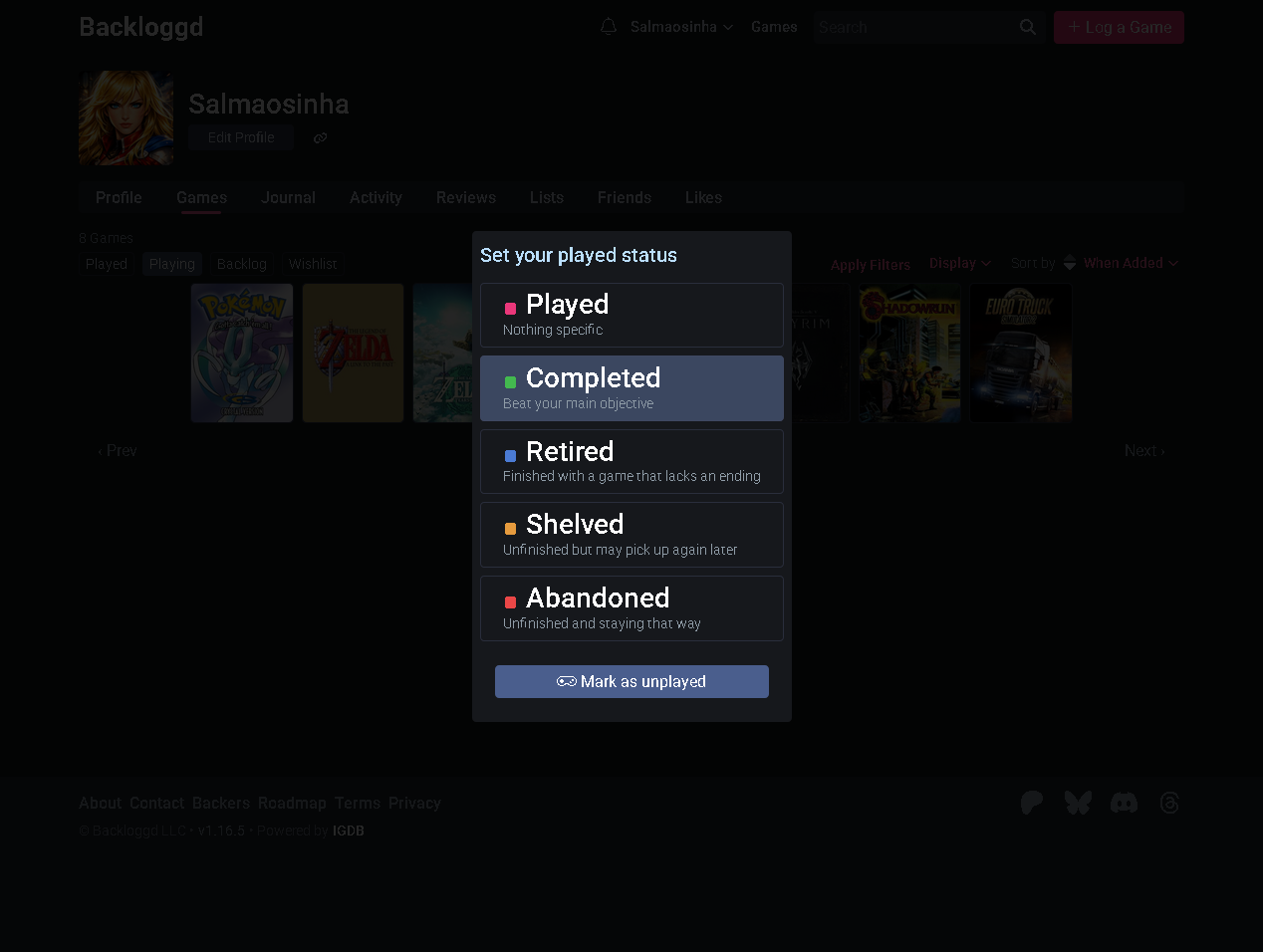 >>220442106Humm, não sabia, quando vi na sua conta só vi vários played e não tinha completed, então achei que não mostrava. :/