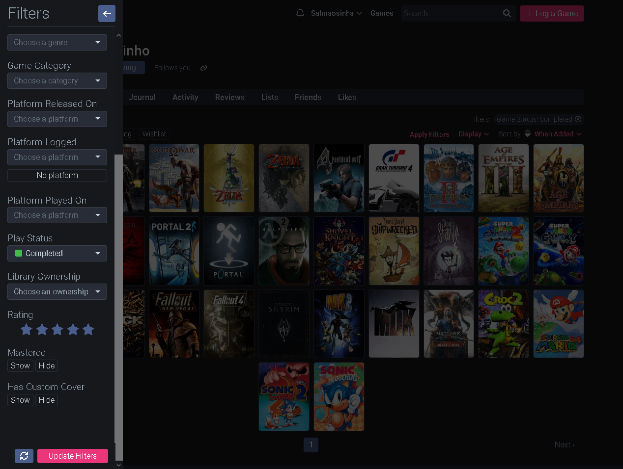 >>220442215Eu fiquei com preguiça de pensar em todos os joguinhos que eu já joguei e adicionar lá no meu perfil lel. Era pra ter maior montão a mais do que só isso. :P