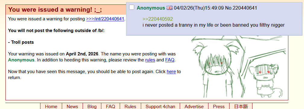 >>220441262I've never been banned or warned for posting the word 'nigger'. Hope this helps