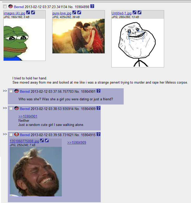 tulee mieleen se kerta kun yritin iskeä yhtä tyttöä ja pyysin sitä jonnekki mettäreitille käveleen ja se kieltäyty ku luuli että varmaan sarjamurhaan sen