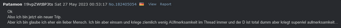 >>220451503Worauf? Der untere Pfosten ist von mir. Der obere indirekt auch, den hat nämlich jemand von mir von gestern kopiert.