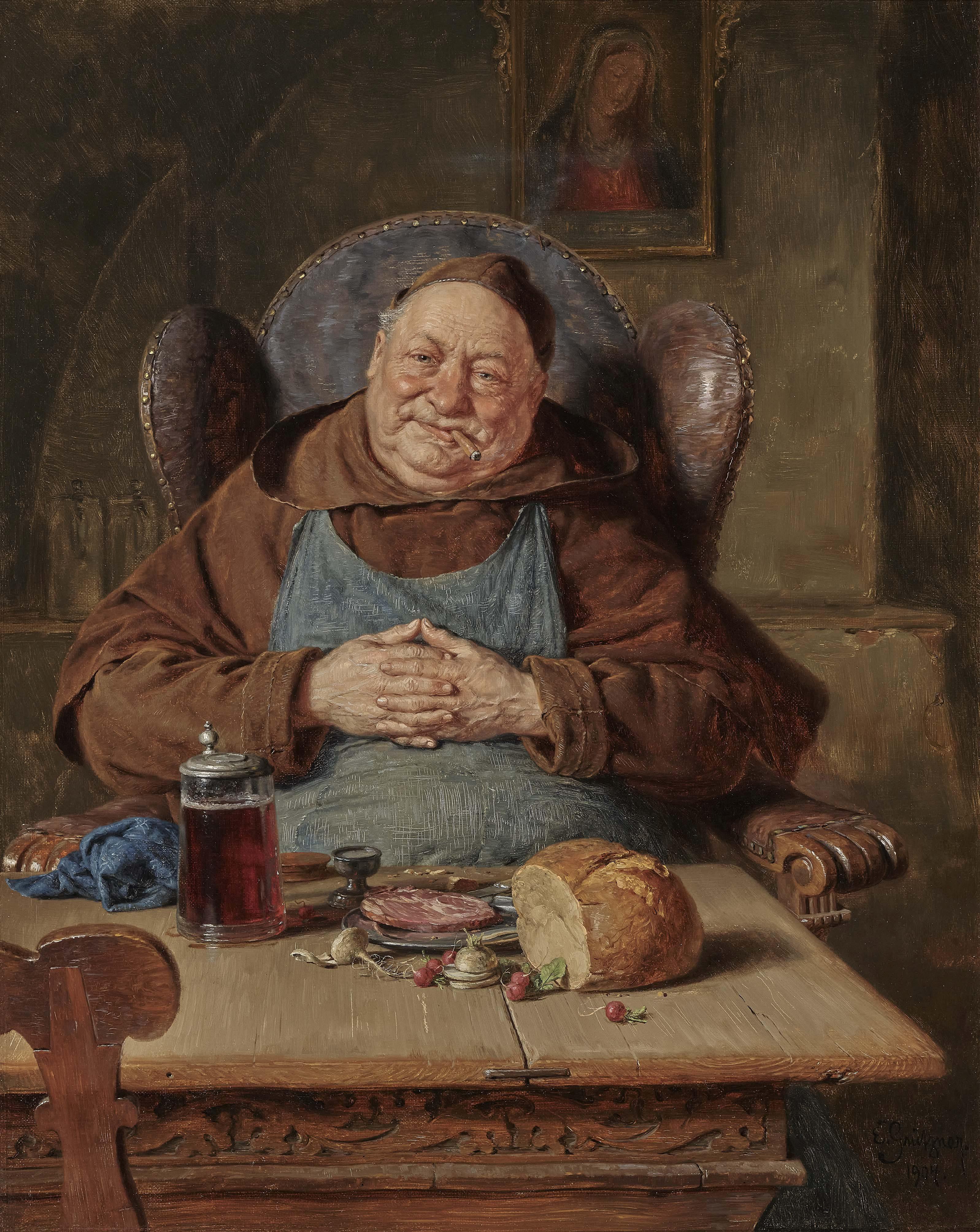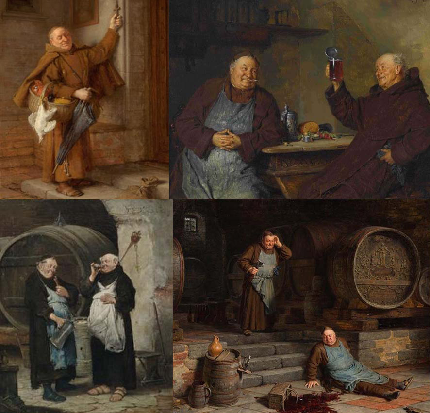 They're known for making their own food, drinks, alcohol and studying the Bible, so naturally there's not much time to be physically active. The monk I had as a teacher was fat too, so it's definitely not wrong to assume they just get that way over time due to the lifestyle.