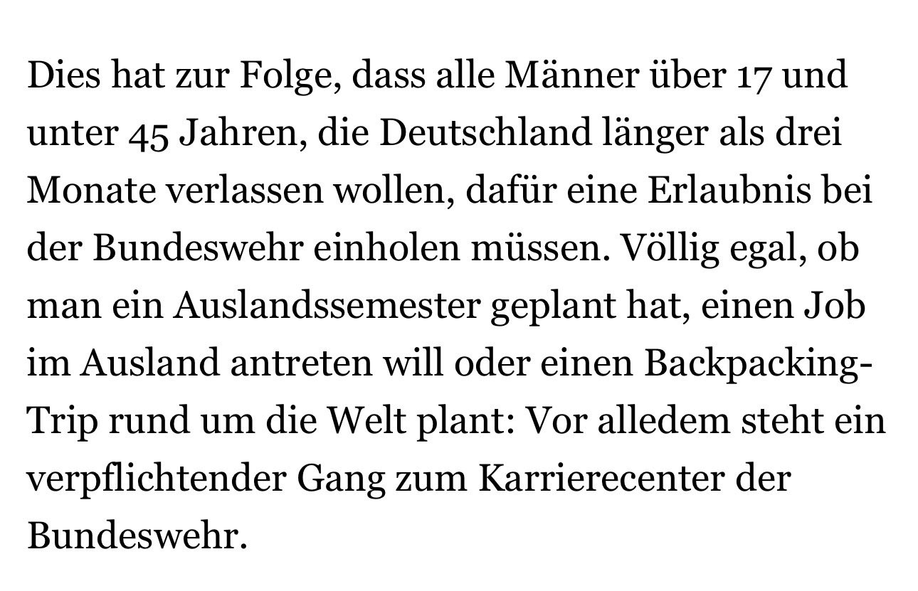 Das ist aber schon im Selbstbestimmungsgesetz abgedeckt. Du kannst dir den Schwanz abhacken und Hormone nehmen, vor dem Kanonenfutterzwang wird es dich nicht schützen. Wenn es darum geht, dein Leben an der Front zu verheizen, wirst du wieder als Mann gezählt.