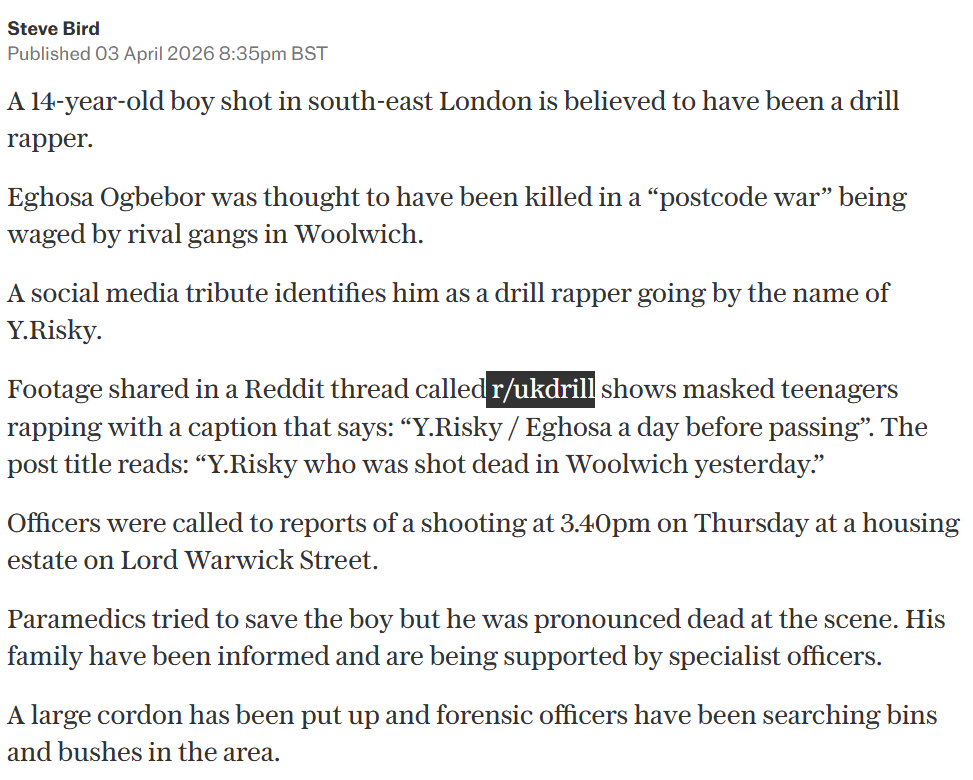 >Footage shared in a Reddit thread called r/ukdrill