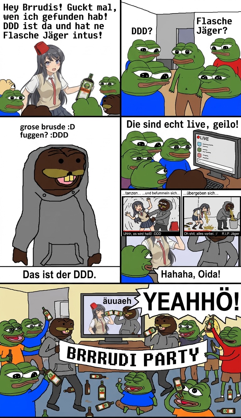Ähm, Brudis?Er ist gebrochen. Finalisch: >>220462462Wir haben es geschafft. Die Wahrheitspächterei des Oberunbrudis ist somit offiziell beendet und fortlaufend wirkungslos.Fühlt richtig gut.Siegermahlzeit geht nei. (itaka pidser und bruditrunk)
