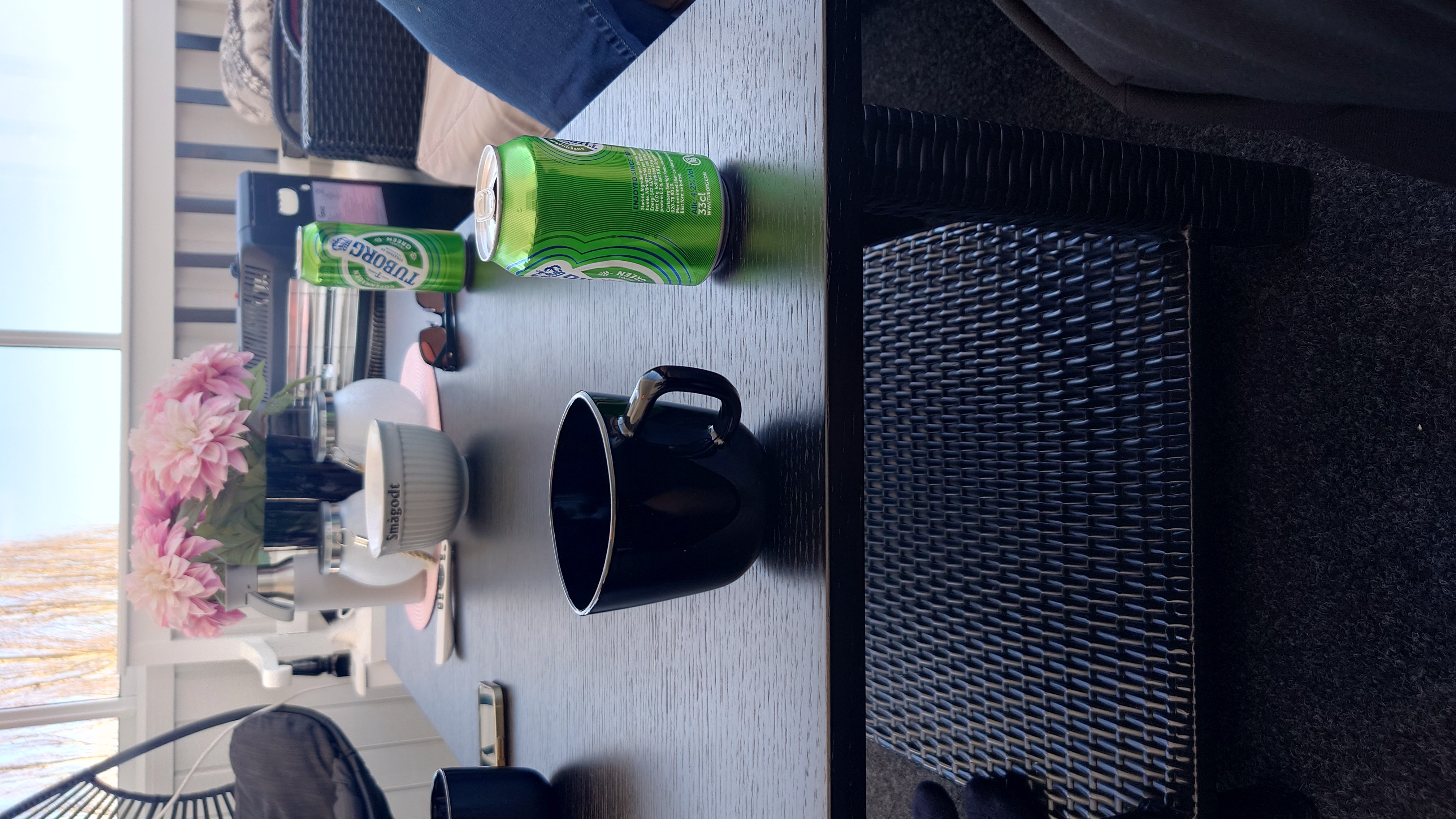 Drikker øl og kaffe
