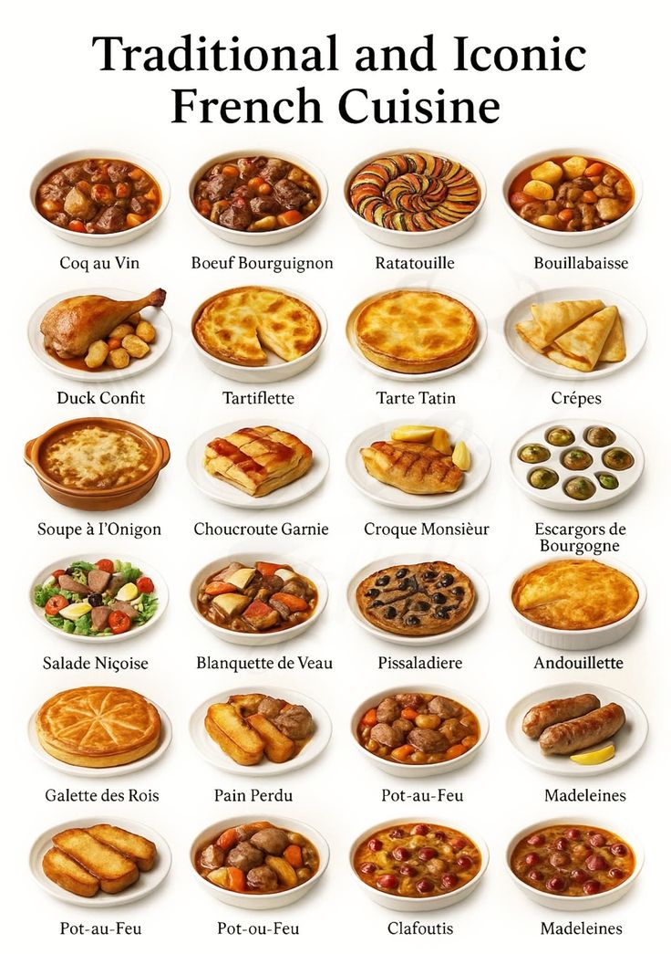 The image is some pretty rough AIslop, but the dishes themselves are real. The most feasible on there is blanquette de veau. The others are either too basic or have overly long cooking times.