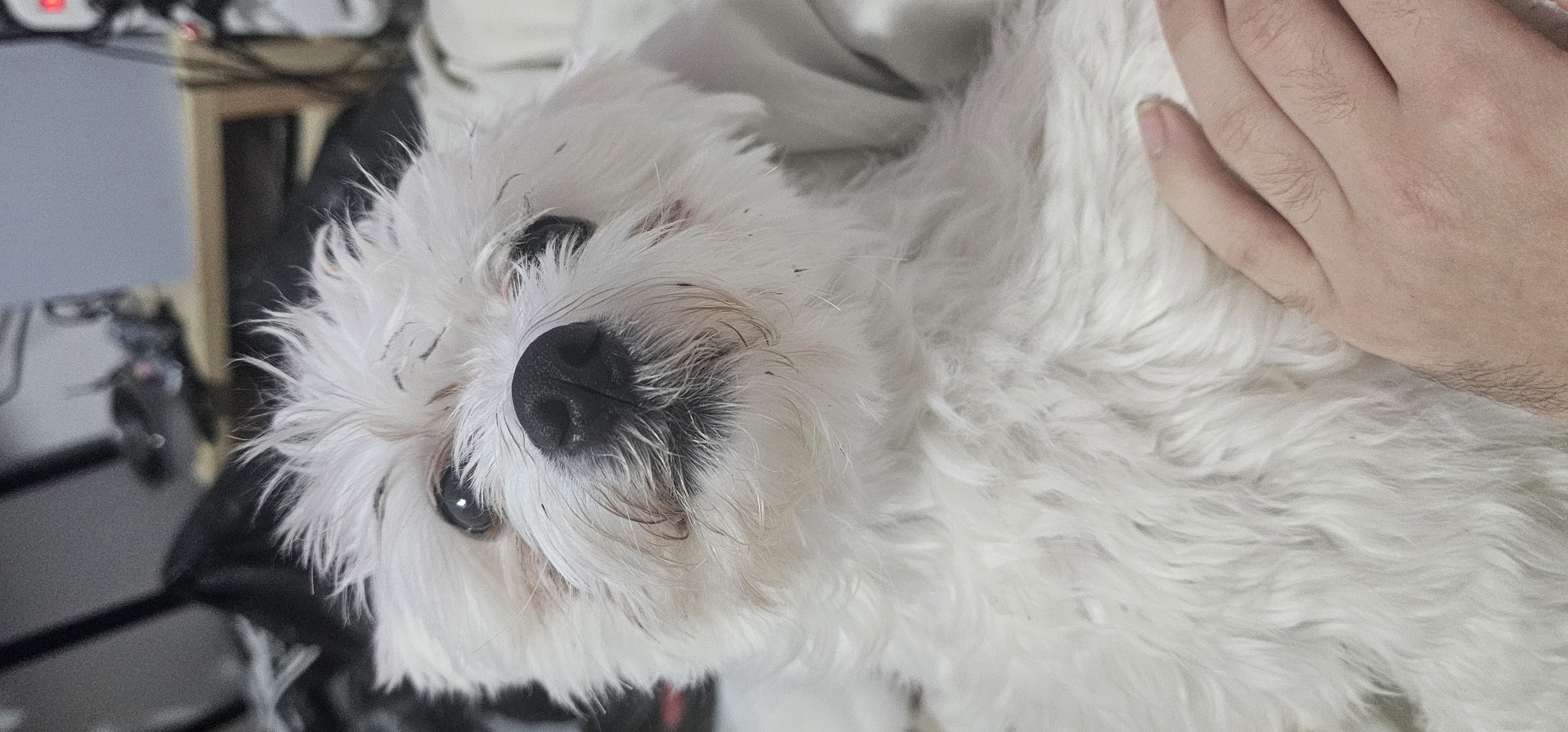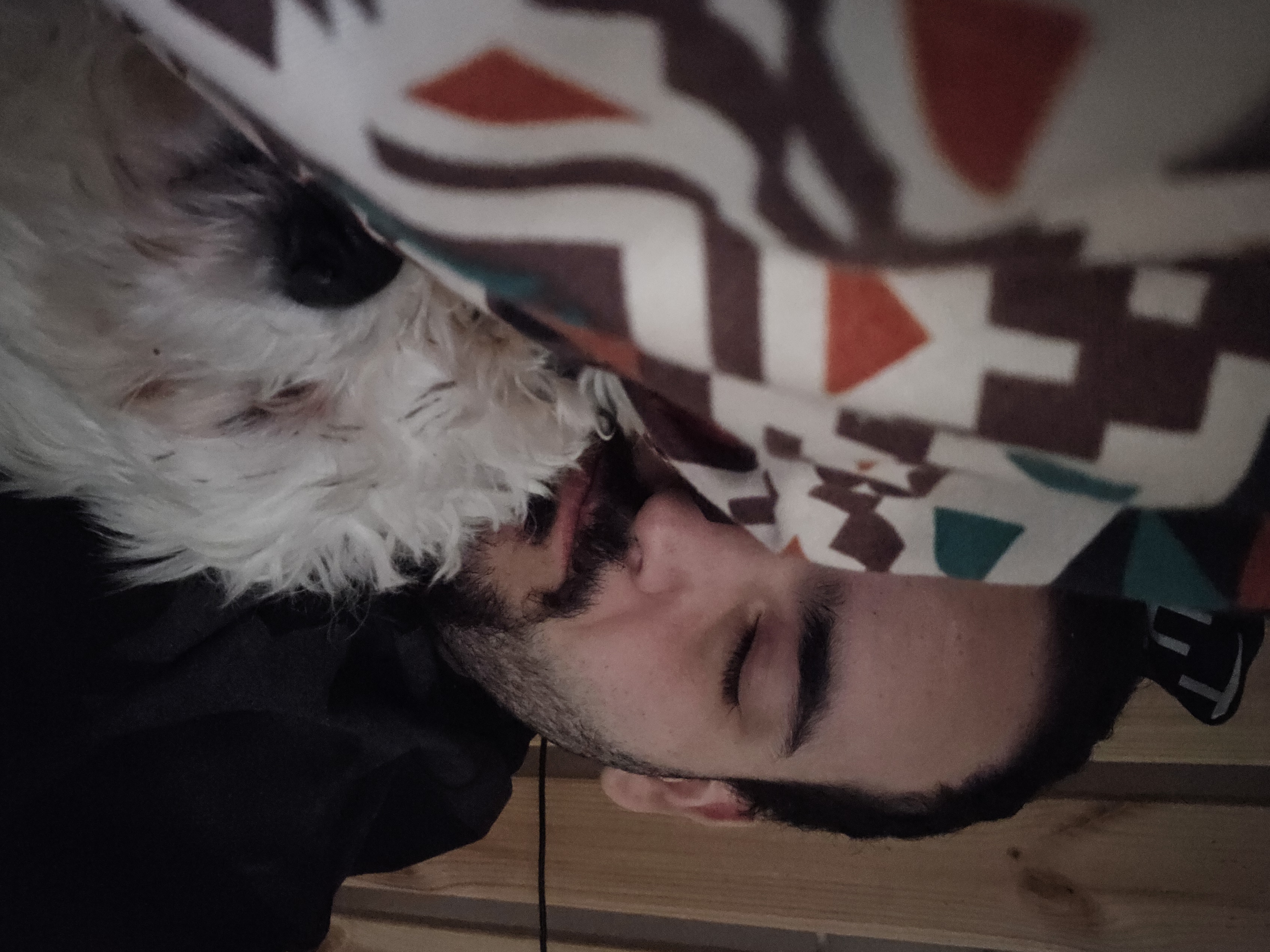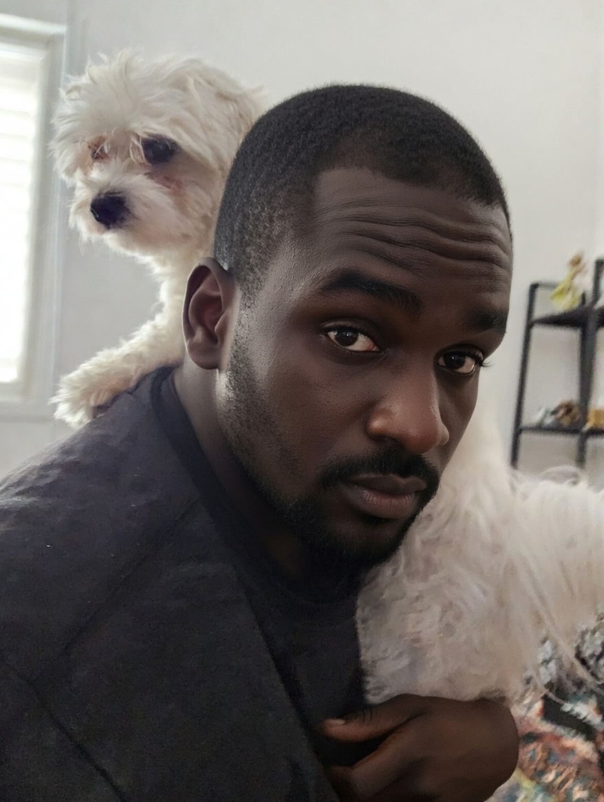 כלב ניגר שליהוא לבן אבל הוא ניגר כי העיינים שלו חומות