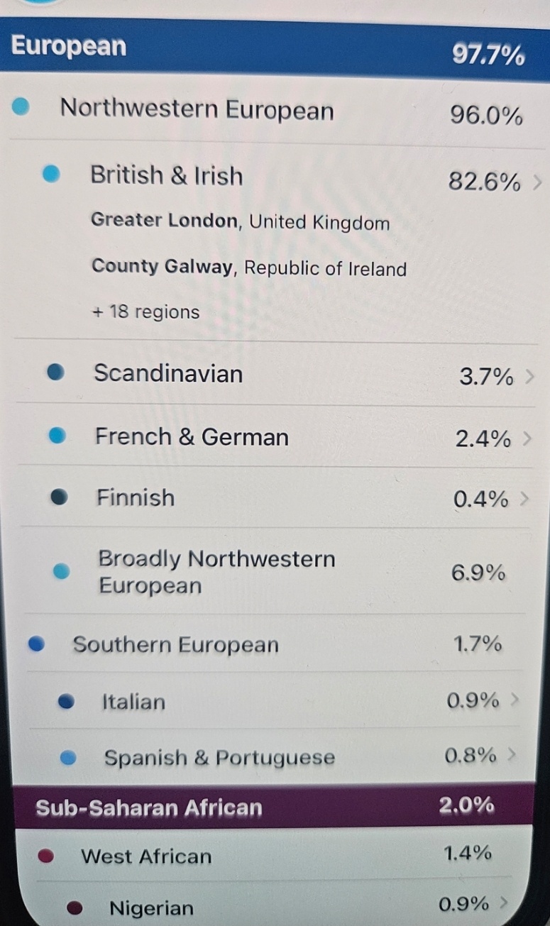 She’s American, from Indiana, with blonde hair and blue eyes.I never would’ve guessed she had any Black ancestry.I’m really pissed off about it.