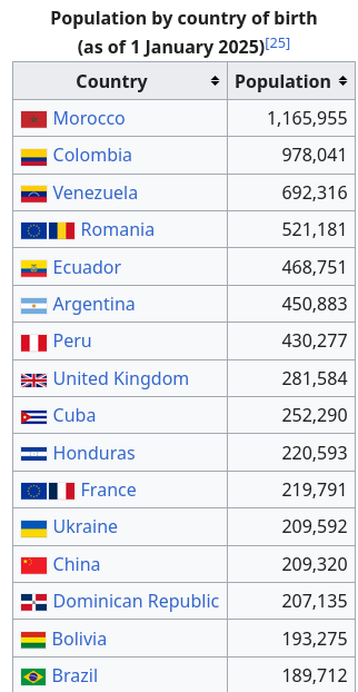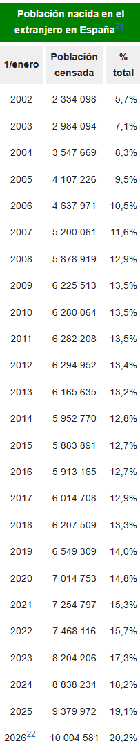 >20% of spanish population was born outside Spain