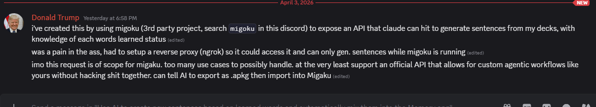 Anyone see this? Really impressed with how advance tailored made software is becoming, should help create more variety of cards and context to learn from just from already known vocabhttps://github.com/khatibomar/migoku
