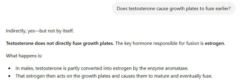 >>220523727Holy shit, you're so retarded that you can't even read. Estrogenic and retarded swede cuck.>Higher testosterone may actually cause earlier growth plate fusion, shortening the total growth window.Testosterone stops the height growth. High testosterone stops it earlier.