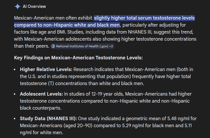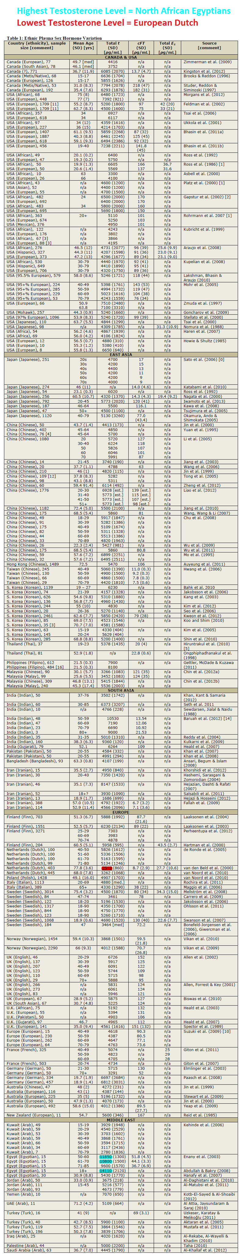 Ranking of testosteroneBrowns > Blacks > Europeans > East Asians