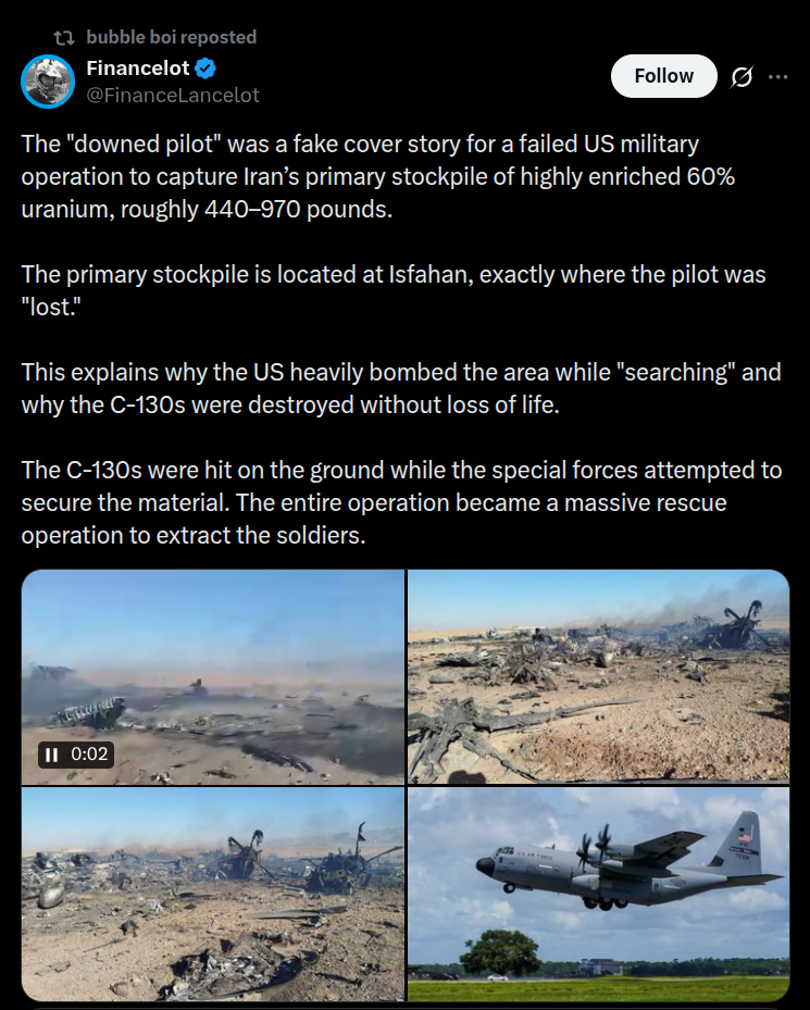 >>220532855>pilotin pelastamiseksi vaaditaan kaksi vitun isoa kuljetuskonetta maahan