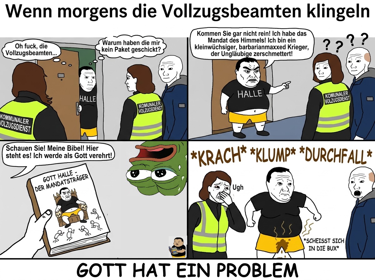 Halle nimmt Stellung zu Patamon.Und jetzt kommt das Allerbesteje nach Situation war das mal ironisch, teilironisch, unironischund mal ist er bei Verstand, auf Meff, unzurechnungsfähigje nachdem wie mans grad braucht>hjehehe ich habs sowas von geschafft im leben>ich laber 24/7 WILLKÜRSCHEISSEja bravo klasse