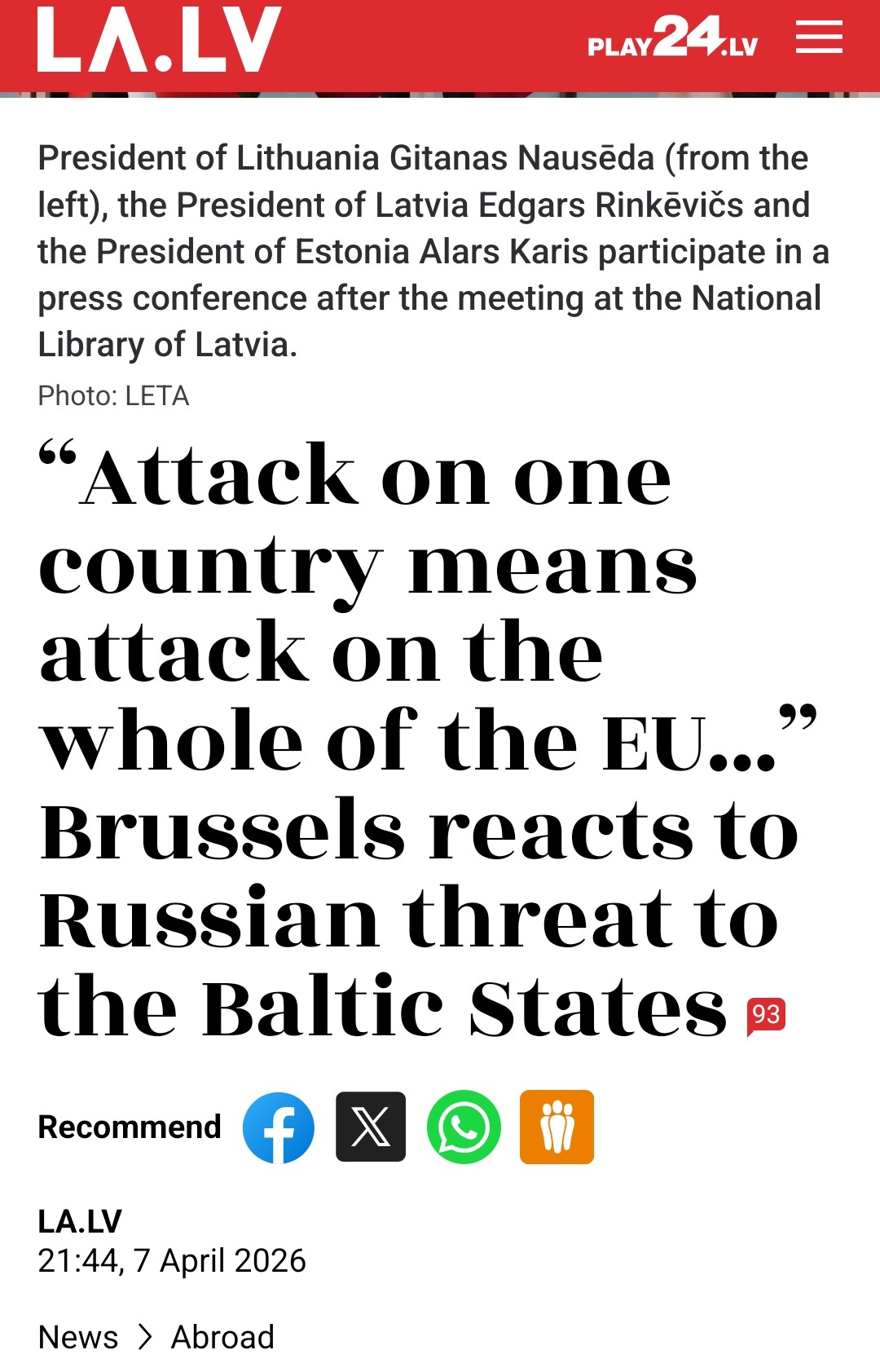 Estonians want to deescalate and now thishttps://www.la.lv/uzbrukums-vienai-valstij-nozime-uzbrukumu-visai-es-brisele-reage-uz-krievijas-draudiem-baltijas-valstim. The issue is being addressed albeit with posturing. Its good either way. Balts might not die after all.