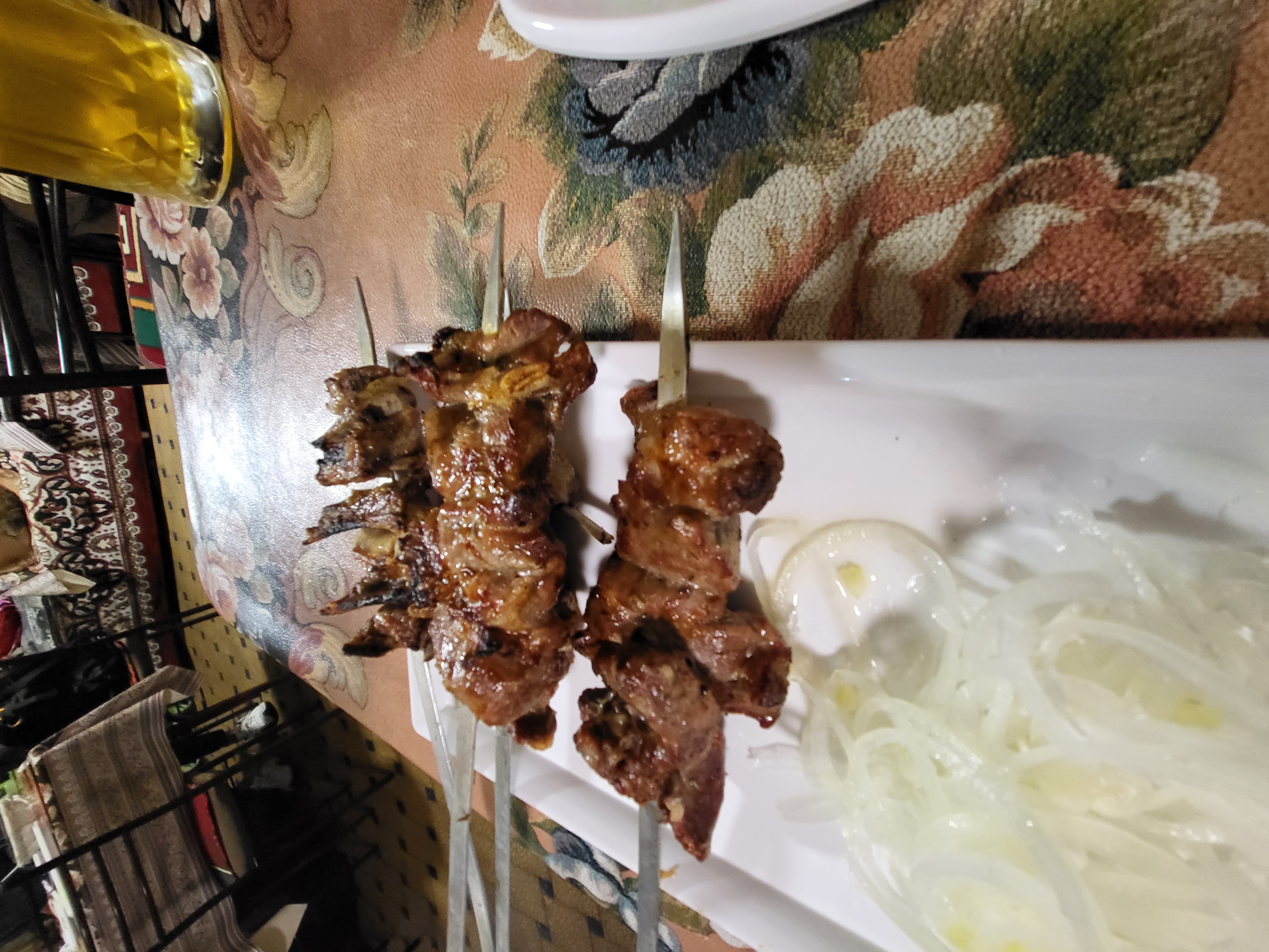 4 janjeca kebaba lagman juha sa nudlima nekim 4 mantje ali velike sa govedinom pola struce kruha koj je kao neka pogaca salata i 4 pive 25e