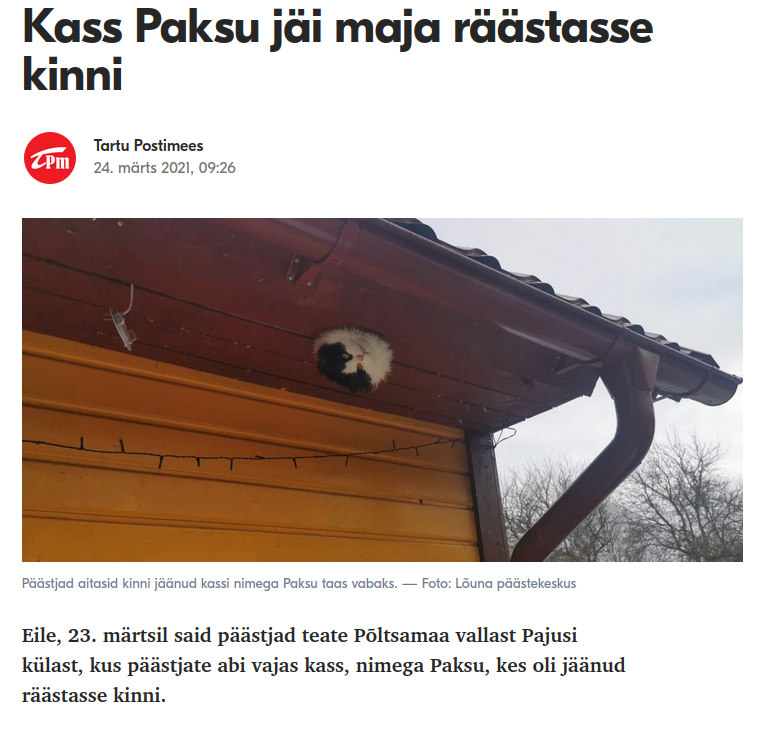kass Paksu jäi maja räästasse kinni -painos