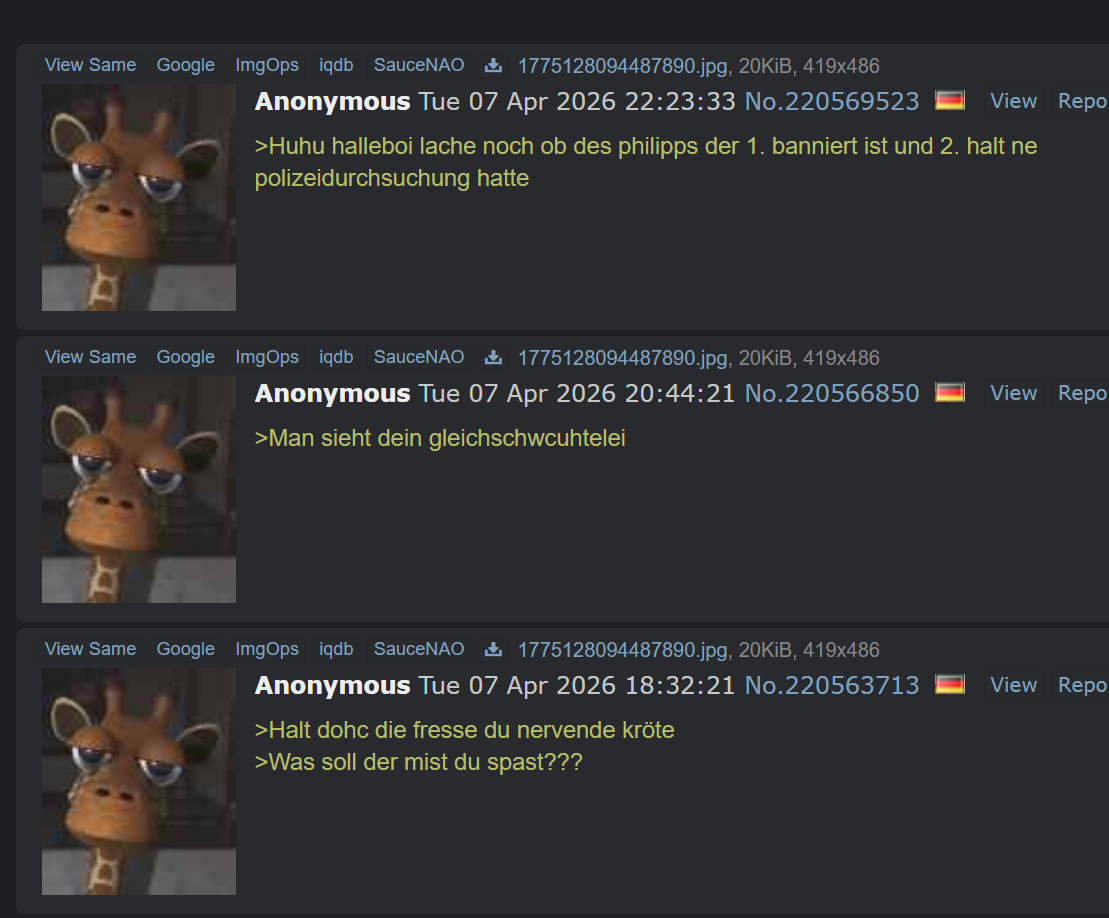>>220606774Ich bin ein 4chan-Urgestein. Du bist ein Tourist, der von irgendwelchen Mainstreamseiten hierher gelangt ist und unsere Kultur weder versteht noch achtet.