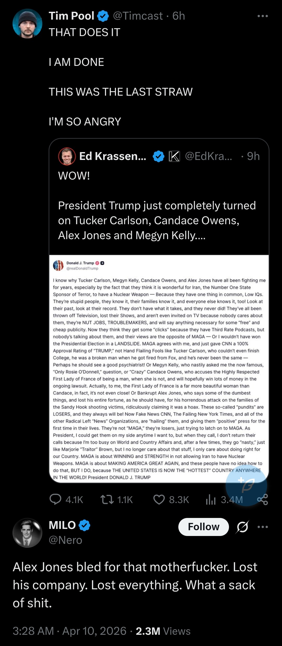 It's crazy how Trump managed destroy his own reputation in the span of 8 months. Like all he had to do was not act like an unhinged asshole on TruthSocial.