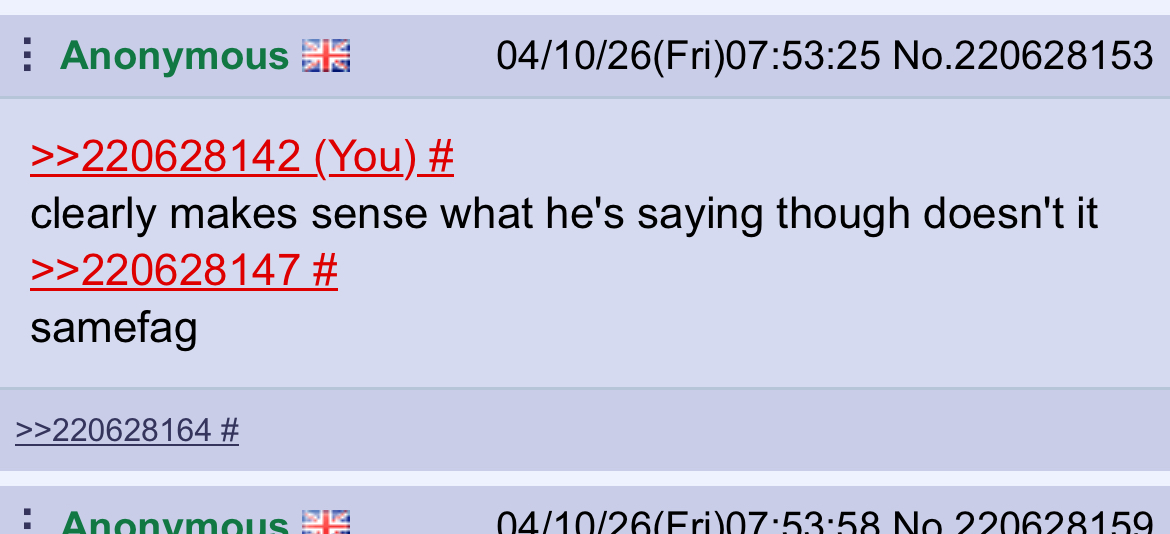 Love the anonymity of 4chan you can be calling somebody a troglodyte one minute and then basically smooching them the next and you'd never know