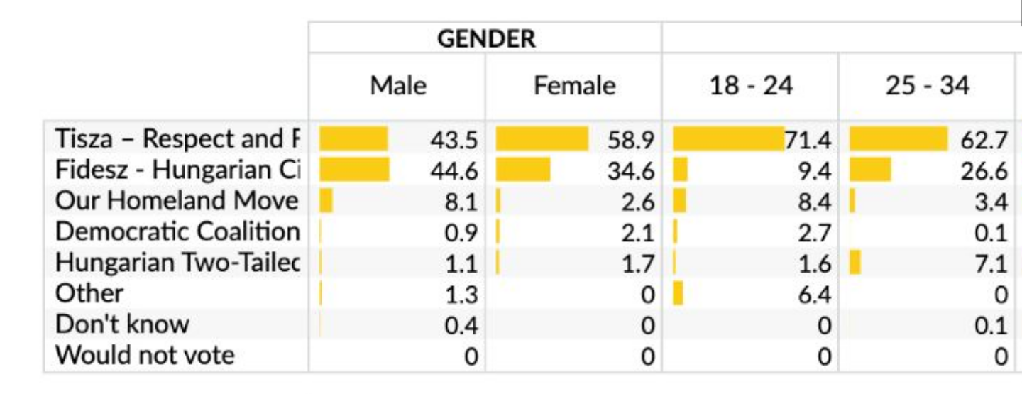 >>220656345Nem úgy értettem.Ha tényleg csak annyi a baj, hogy nem bíznak a c-betűs úriemberben, akkor egyszerűen tudnának a tiszára is szavazni.Azt furcsállom, (de csak egy kicsit, mert egy kétszeres szorzót simán el tudok képzelni) hogy több mint háromszor annyi csúd van a férfiak körében mint a nőkében. Ami meg még jobban meglep az az, hogy a majdnem 2,5-szer annyi csúd van a 18-24 korosztályban mint a 25-34-ben. Azt hittem, hogy kettő közül az idősebbik csoportban több a csúd.
