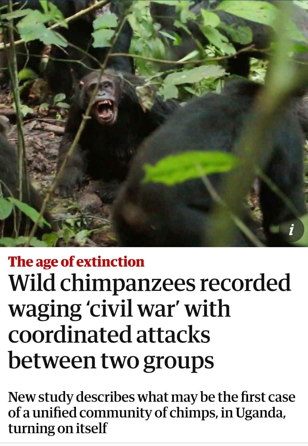 Over 30 chimps killed on ongoing chimp civil war.