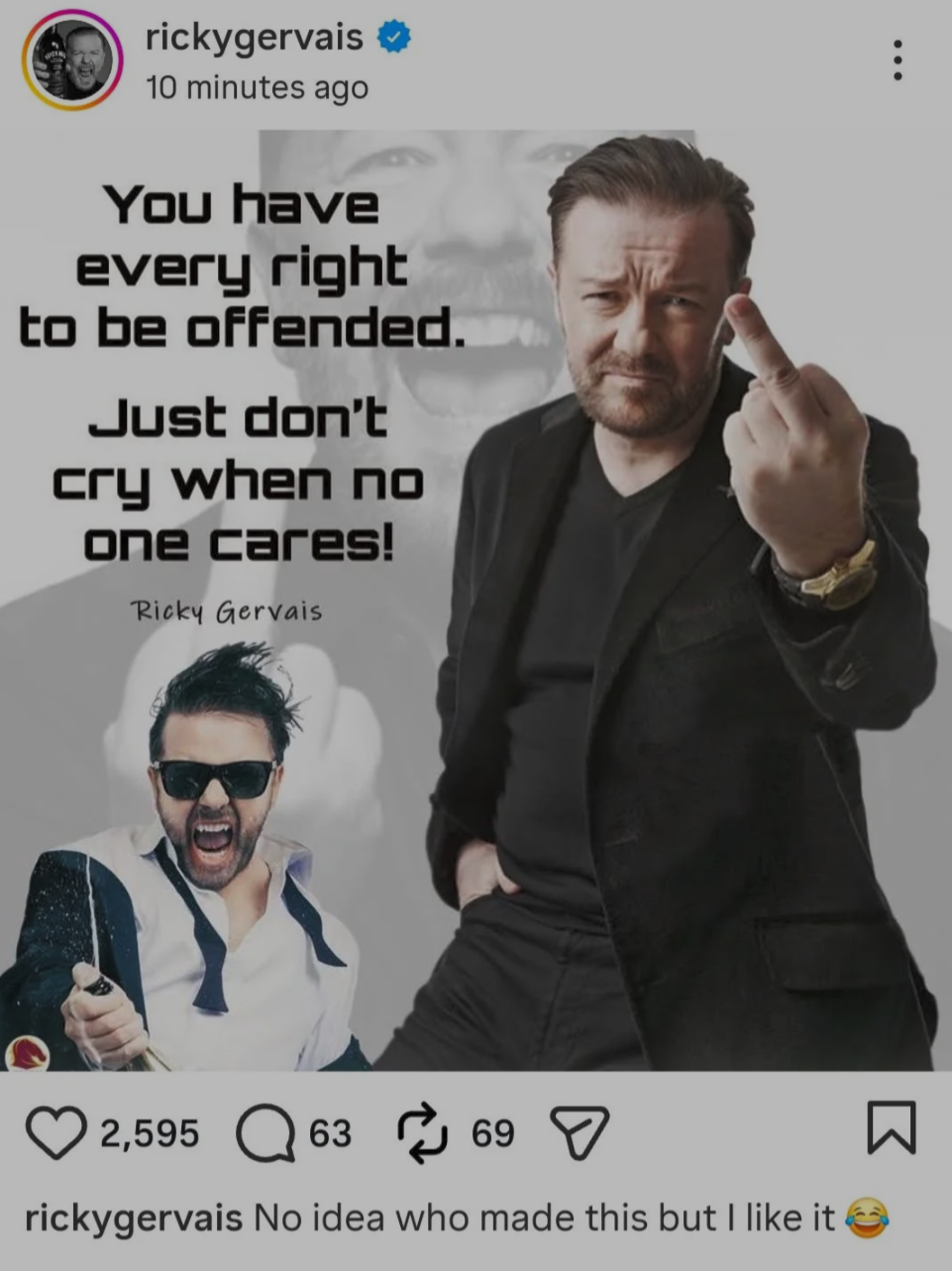 you've giving Mr Gervais a little too much credit lol