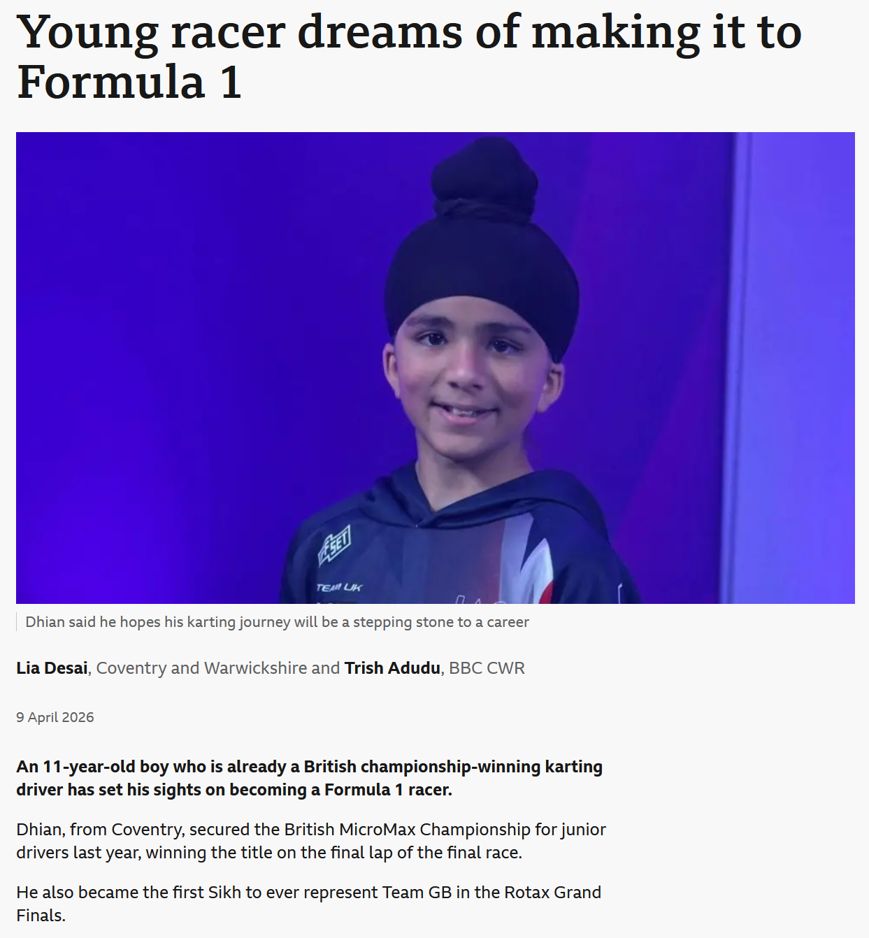STOP THE PRESSES!HOLD THE FRONT PAGE!>11 YEAR OLD LAD WANTS TO BE A RACING DRIVER!