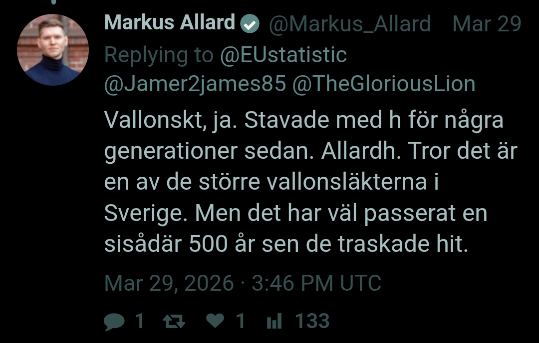 är Allard ett svenskt efternamn?han ser blandad ut