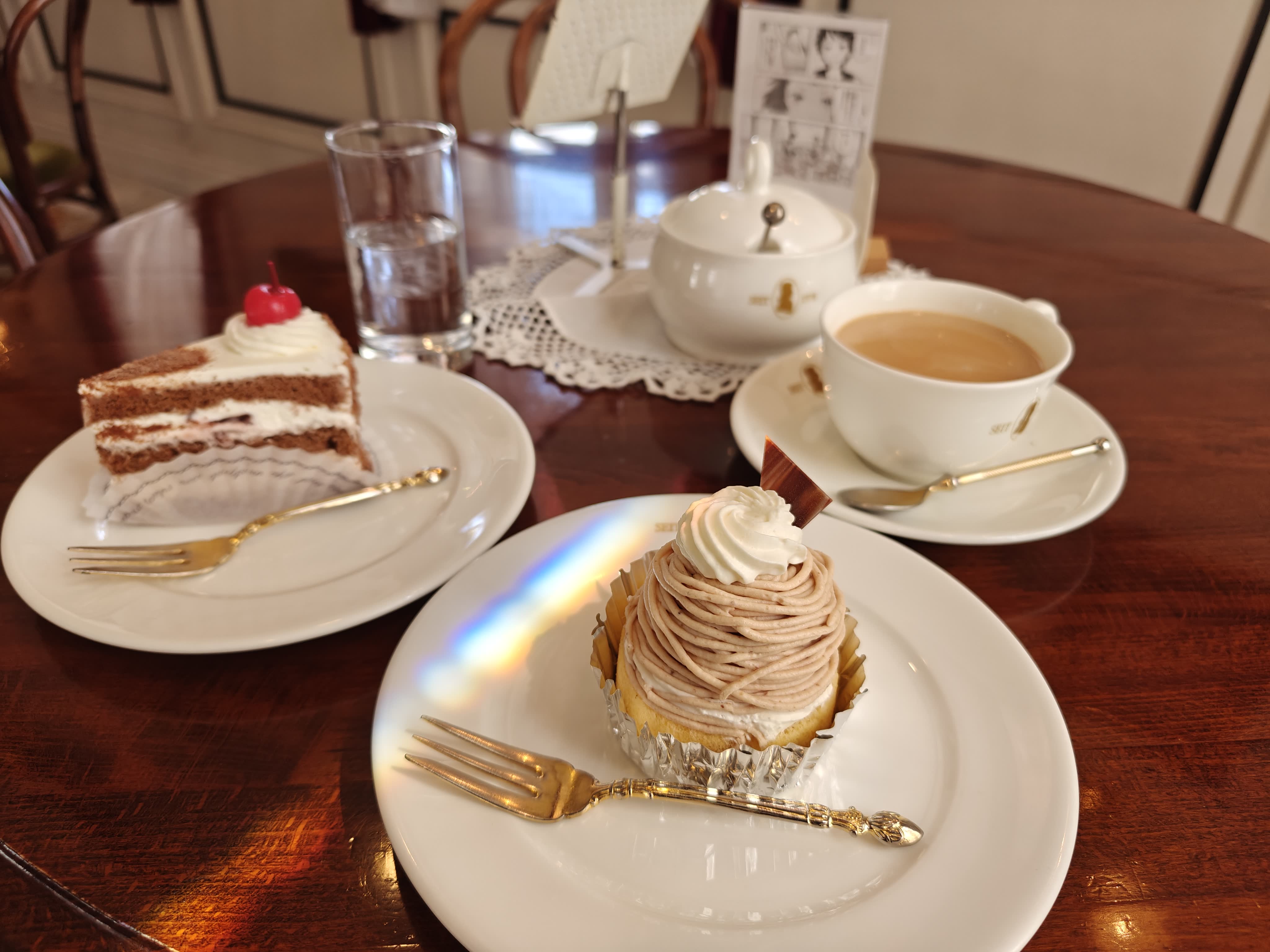 tässä setit tämä mont blanc on tosi hyvä. mustametsä ok. sen olen huomannut että kirsikat maistuvat suomessa paremmalta
