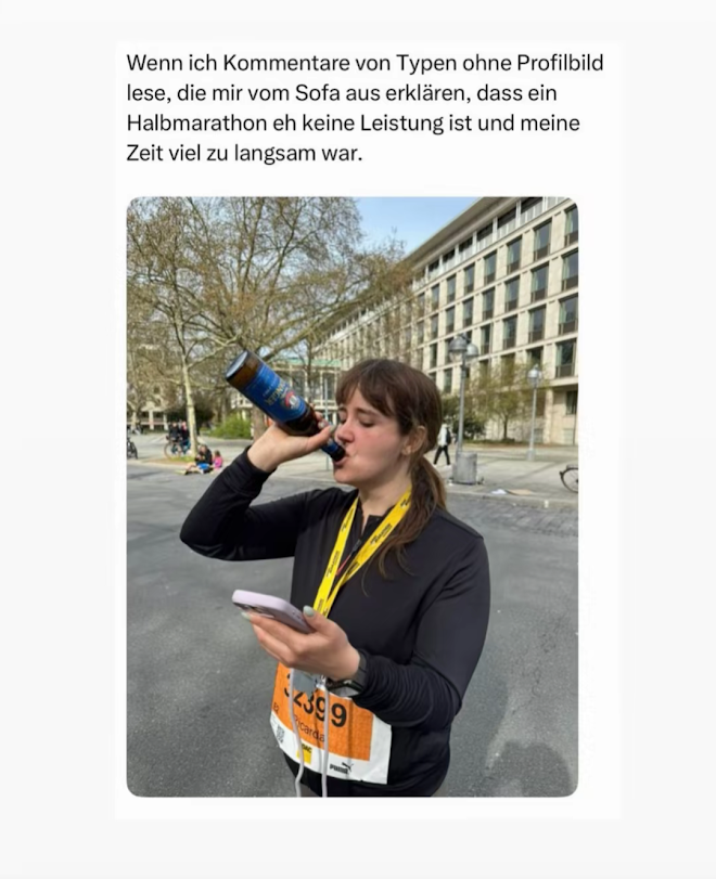 Ricarda Lang (ehemals Breit) hat einen Halbmarathon geschafft. Sagt etwas nettes über sie, ich fang anwürde