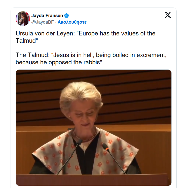 "The EU is based on the values of the Talmud" - European Commission President Ursula von der Leyen