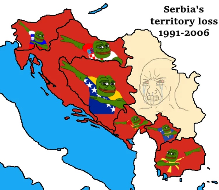 >>220740870>Slovenijawe wuz austrija srbi>Hrvatskapokatoliceni srbi>Bosnaburek sa sirom srbi>Crna Goranarko kartel srbi>Kosovosrbi sa primesom albanskog govneta>Makedonijawe wuz bugarska srbi